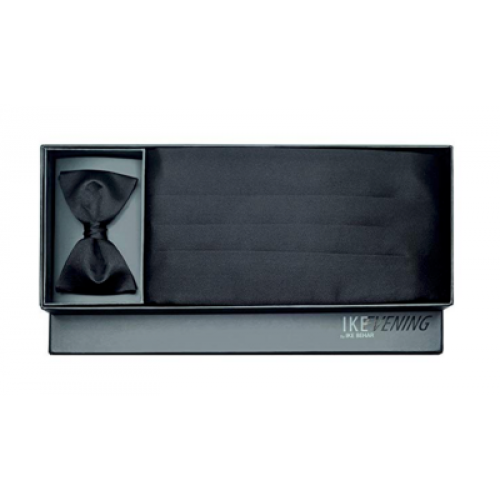 Ike Behar Black Silk Cummerbund and Bow Tie Set