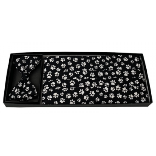 PAW PRINT BLACK CUMMERBUND AND BOW TIE SET